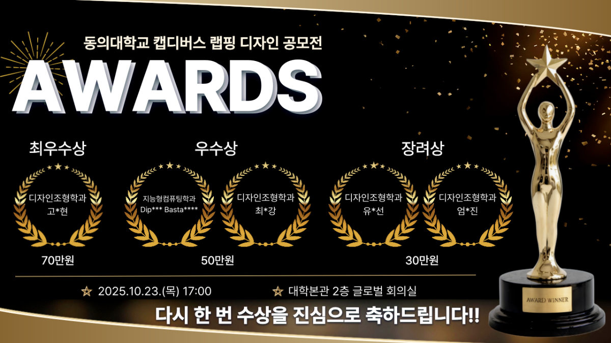 이번 동의대학교 캡디버스 랩핑 디자인 공모전 수상자를 발표합니다!